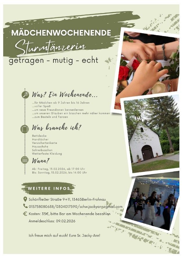 dann meldet euch gerne zum 1. Mädchenwochenende 2026 im Schönstattzentrum in Berlin Frohnau an.